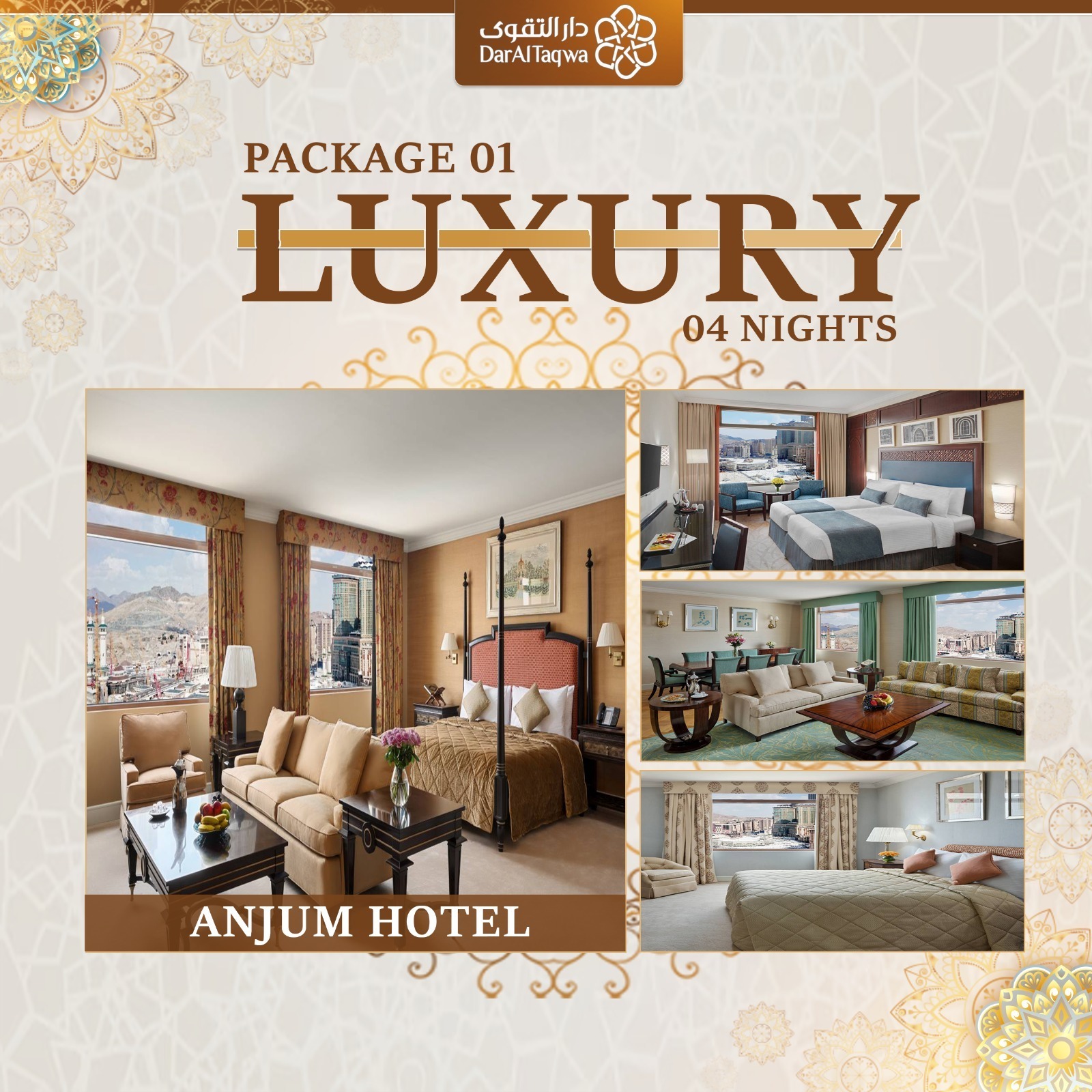 This luxurious package from Dar Al Taqwa offers you an unforgettable spiritual experience through a diverse program in Makkah. You will enjoy easy access to the Grand Mosque in Makkah during your comfortable stay at the Anjum Hotel. Immerse yourself in the spirituality of the holy month of Ramadan while in the heart of the Grand Mosque. This package also saves you the hassle of finding transportation, as it includes a main breakfast meal and private car transfers from Jeddah Airport to your hotel in Makkah and back to the airport for your convenience. Furthermore, during your special program, we will take you on a unique and enriching tour in a private car to visit the most prominent religious landmarks in Makkah. Let's make your experience with us an unforgettable journey with Dar Al Taqwa.