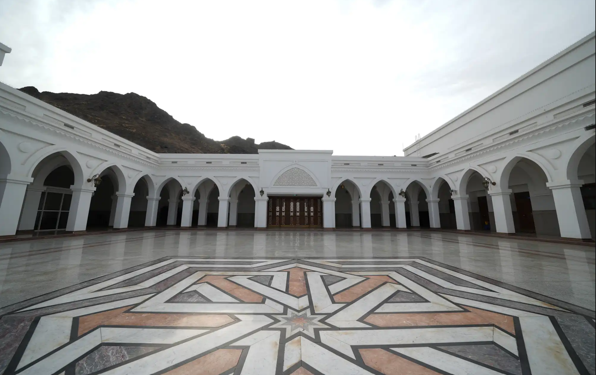 Namirah is the name of a small mountain located to the west of the mosque, to which it is attributed. Pilgrims pray the midday (Dhuhr) and afternoon (Asr) prayers combined and advanced at this site, following the example of the Prophet who moved from Mina to Arafat to stay in a tent at Namirah on the Day of Arafat, the 9th of Dhul-Hijjah. After the sun passed its zenith, he moved to the valley of Uranah where he delivered a sermon and prayed with the people. The Namirah Mosque has undergone several expansions throughout history, with the most recent being during the Saudi era to accommodate the increasing number of pilgrims, making it one of the largest mosques in the world.