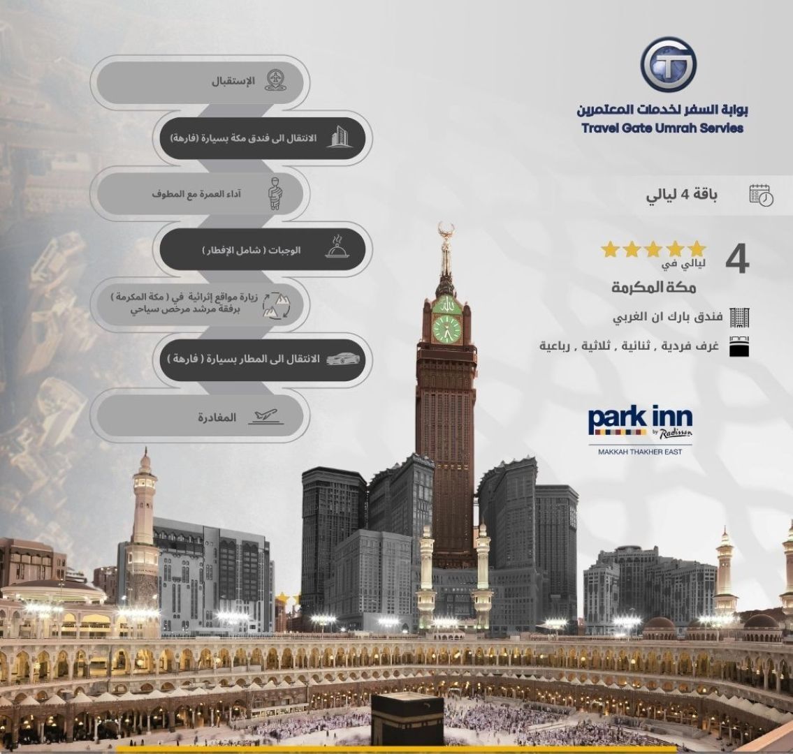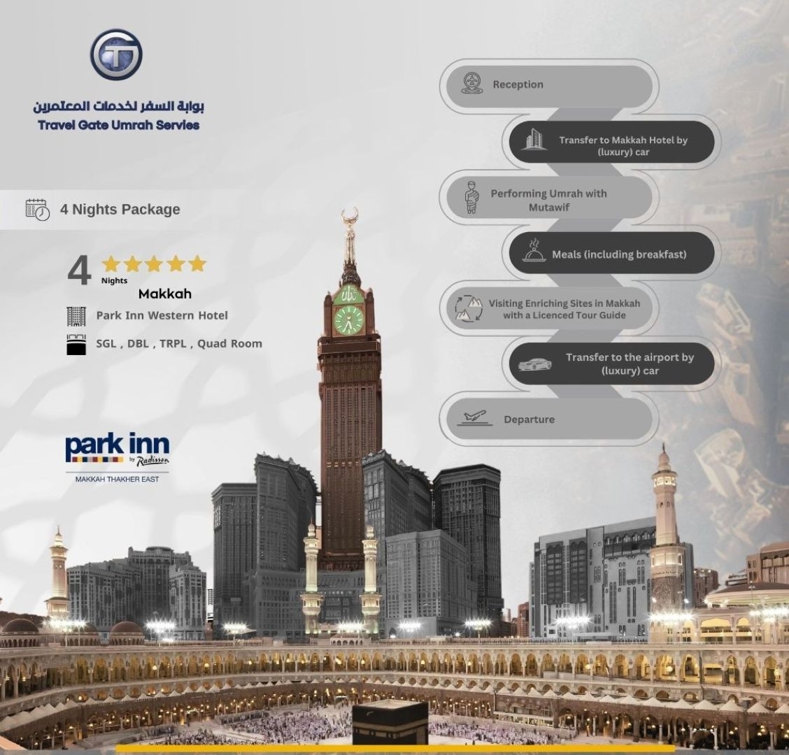 Premium Umrah Package Through our Premium Umrah Package, we aim to facilitate the Umrah journey for Muslims from around the world by offering a distinctive, safe, and spiritually enriching experience that remains cherished in memory. We provide premium services in accordance with the highest quality standards to ensure your comfort and satisfaction. The package includes: Meet and assist services at the airport for arrival and departure, ensuring comfort from the moment you arrive until your departure. Luxury transportation from the airport to the hotel and during your stay in Makkah Al-Mukarramah, ensuring smooth and elegant mobility Accommodation in four-star hotels in Makkah Al-Mukarramah, providing the highest levels of comfort and luxury throughout your stay. Accommodation includes daily breakfast. Performance of Umrah rituals accompanied by a licensed Mutawwif who provides complete religious guidance to ensure the rituals are performed with ease and peace of mind. Enriching guided visits to the most prominent historical and cultural sites in Makkah Al-Mukarramah with a licensed tourguide, including The Revelation Exhibition. Through this package, we are committed to delivering a fully integrated experience characterized by exceptional quality in every detail—from luxury transportation and comfortable accommodation to professional religious guidance and enriching cultural experiences—ensuring a distinguished Umrah journey in Makkah Al-Mukarramah.