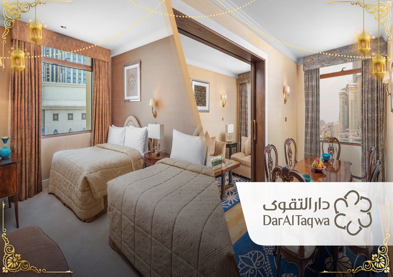 This luxurious package from Dar Al Taqwa offers you an unforgettable spiritual experience through a diverse program in Makkah. You will enjoy easy access to the Grand Mosque in Makkah during your comfortable stay at the Anjum Hotel. Immerse yourself in the spirituality of the holy month of Ramadan while in the heart of the Grand Mosque. This package also saves you the hassle of finding transportation, as it includes a main breakfast meal and private car transfers from Jeddah Airport to your hotel in Makkah and back to the airport for your convenience. Furthermore, during your special program, we will take you on a unique and enriching tour in a private car to visit the most prominent religious landmarks in Makkah. Let's make your experience with us an unforgettable journey with Dar Al Taqwa.