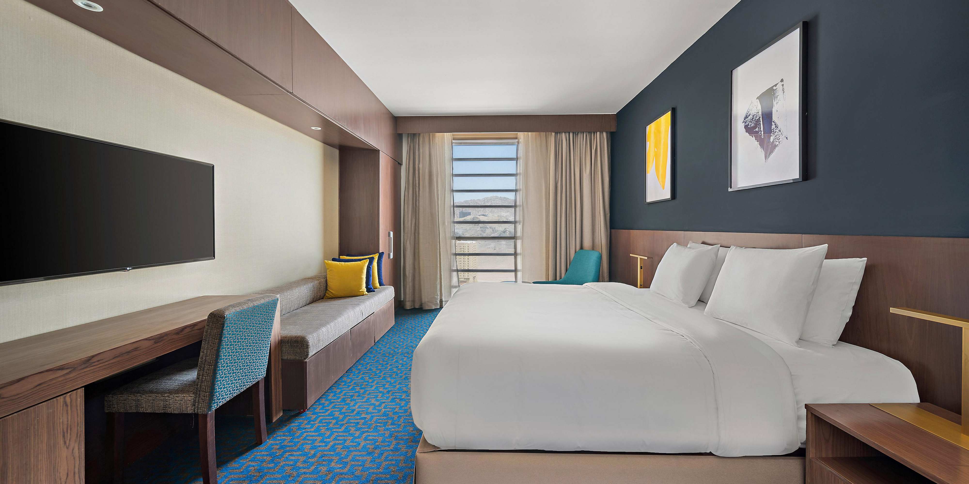 This luxurious package, offered by Dar Al Taqwa Company, is located at the Voco Makkah, an InterContinental Hotels Group hotel in Makkah, just 1.3 km from the Grand Mosque. It features a restaurant, private parking (at an additional cost), and a shared lounge. The property also offers a 24-hour front desk, free shuttle service, room service, and free Wi-Fi throughout.