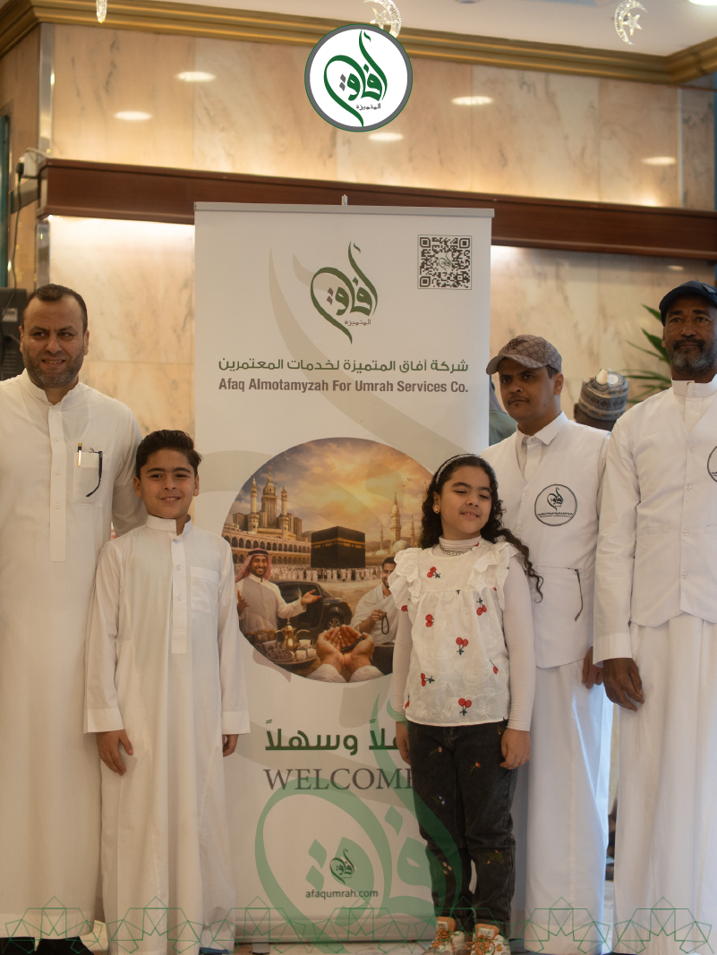 Welcome to Afaq Almotamyzah for Umrah Services. We are one of the Saudi Umrah companies licensed by the Ministry of Hajj and Umrah. We accompany you on a complete spiritual journey, thoughtfully designed to grant you peace of mind and comfort, enabling you to perform your rituals with ease and tranquility. Afaq Almotamyzah … a spiritual experience with exceptional hospitality that will never be forgotten. We offer distinguished Umrah packages that combine outstanding quality with the highest standards of hospitality, enriching your spiritual journey from the moment of elegant reception and farewell at airports, to carefully selected luxury accommodations in hotels close to the Haram. This includes visa issuance, seamless transportation arrangements, and comprehensive spiritual and cultural guidance that deepens your faith experience and leaves a lasting impact on your heart. Our specialized team accompanies you with care around the clock, paying attention to the finest details, because we believe that the comfort of the Guests of Allah is the foundation of a truly fulfilling spiritual journey.